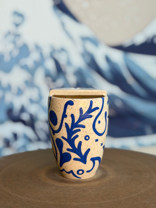 Blue on White Doodle to-go mug | Mini