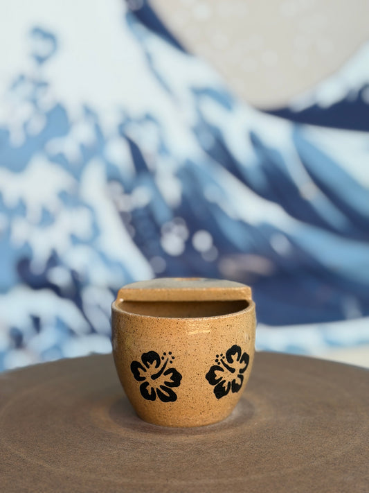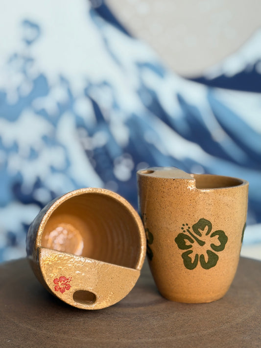 Black on Tan Hibiscus to-go mug | Mini