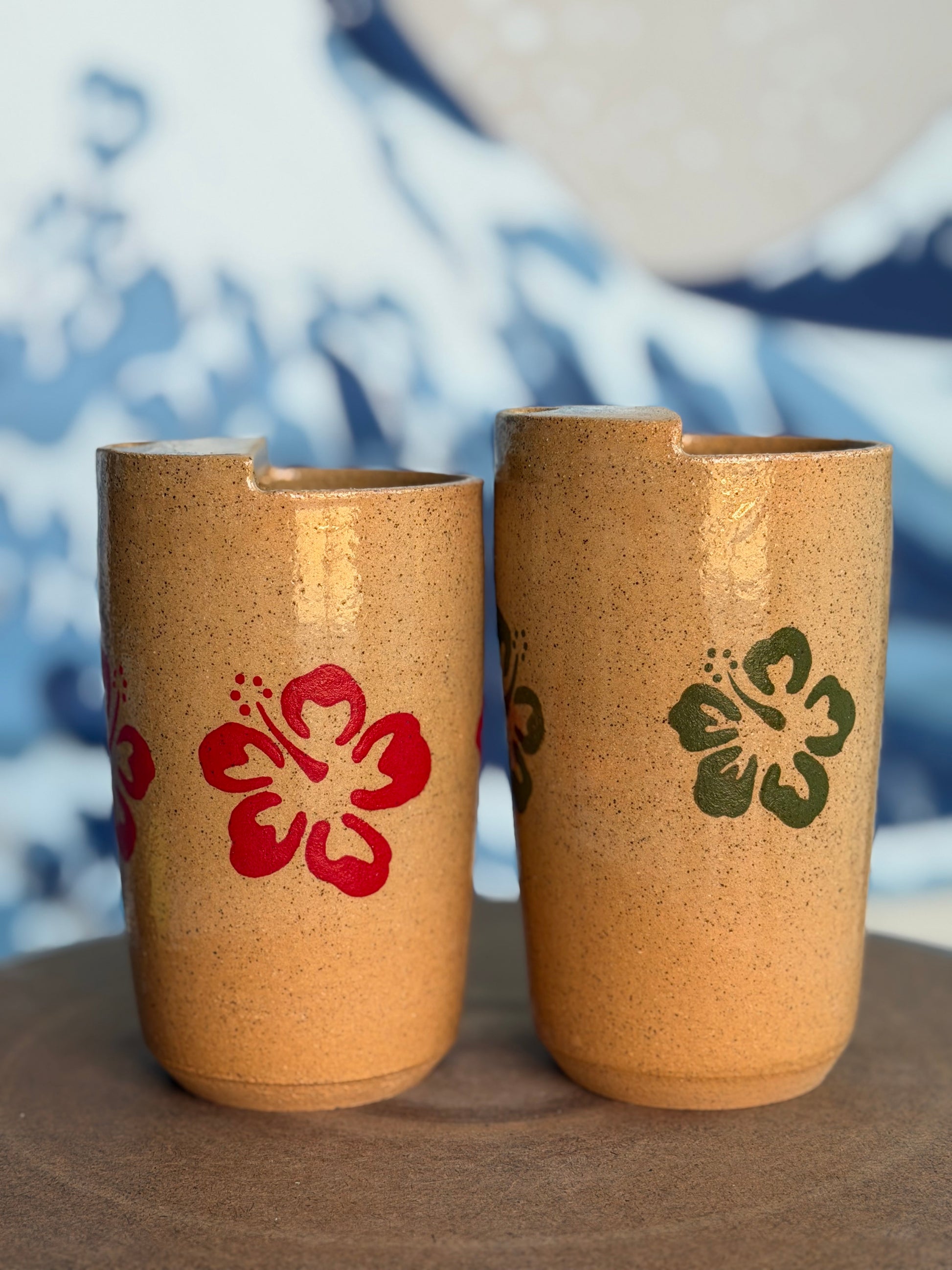 Merry Christmas! Hand-painted hibiscus design. Holds 16-20 oz :)